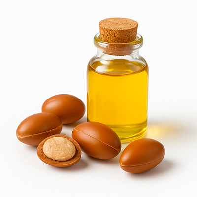 - Huile d’argan : nutrition fine, éclat et douceur de surface.