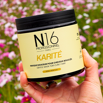 → Résultat : cuir chevelu propre et confortable, fibre réceptive aux soins.2) Nourrir & assouplir (Masque Karité N16)